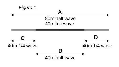 If we refer to figure 2 we can see why. The portion of the wire “B” is now a full wave on 20m and it is terminated by the half wave sections “C” and “D”. So B is too short by the same 5%.
