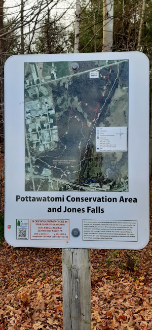 This was an especially pleasant activation. I was well into the woods and didn’t see another human being throughout the activation. I took a moment to enjoy the surroundings before departing – very peaceful and soothing! I have hiked every trail in Pottawatomi Conservation Area, including the 39-metre long side trail that leads to a lookout point above Jones Falls on the Pottawatomi River. Extreme caution must be exercised on this short trail because the cliff edge above the falls is unprotected and the rocks can be very slippery! It’s well worth the view if you are careful.