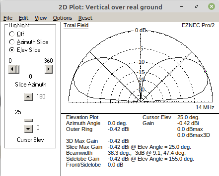 My first step was to model my antenna using EZNEC. From that I determined that maximum radiation from my antenna was at an elevation of 25 degrees. The antenna has no gain so any component of the signal propagated at a higher angle would be attenuated. Since I was working QRP that meant any stations within close range probably wouldn’t hear me (as was indeed the case).