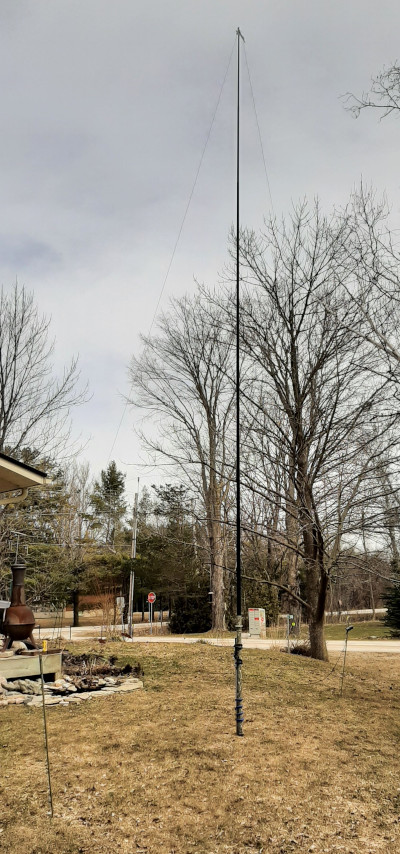 1. Thanks for the comment Monty. The pole was originally an MFJ 33ft telescopic fiberglass pole. After it was damaged in a fall I repaired it with sections from a fishing pole that fit exactly to replace the damaged sections.