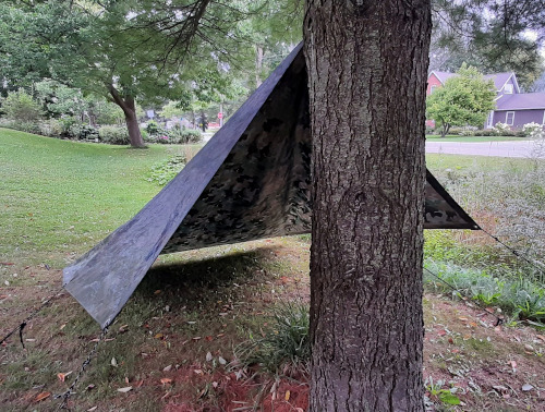 I recommend a tarp shelter. If you search online you can find many resources providing detailed instructions on how to build a tarp shelter. The following images illustrate some of the different tarp shelters I have built and used.