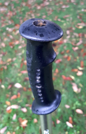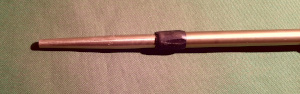 Trekking poles for ham radio use need a couple of small modifications. With these mods completed, the poles have multiple uses in amateur radio. Step One: remove the plastic molded tips at the bottom of the poles. These tips are usually glued onto the poles so I found a little less-than-gentle persuasion was required to remove them. First, I warmed the plastic tips with a heat gun to soften them. Then, I held the tips in a bench vise and, using a pair of vise grips on the metal pole just above the tips, I twisted the pole until the glue surrendered to superior force. The bottom end of the trekking poles are tapered to a point about a quarter of an inch diameter.