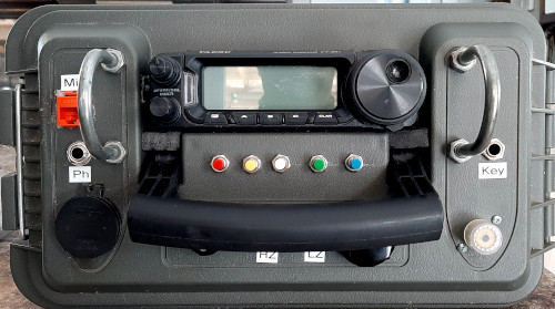 Another difference between the QRP and QRO packaging is that the QRP rig case must be opened when operating. The lid was made to be removable, but when closed, provides a weatherproof seal for protection. The QRO rig does not need to be opened during operation. The FT-891 head is mounted on the case lid, as are the jacks for the CW paddles and headphones, the memory buttons, and now the L-match controls. This arrangement requires additional protection while transporting the rig. The 3.5mm jacks were recently replaced with 1/4-inch jacks for ease of maintenance, but I am considering replacing the 1/4-inch jacks with screw-on aviation style connectors for added reliability during field operations. It is difficult to keep connections clear of sand, soil, bugs and moisture when operating in the field.