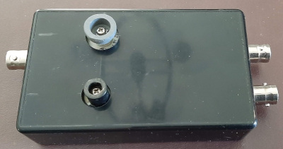 The final design comprises nothing but a small plastic project box, 2 miniature variable capacitors (removed from old AM/FM radios), one inductor wound with 26awg magnet wire (from a junk box transformer) around a small type 6 powdered iron toroid (from a junk box circuit board) and 3 BNC connectors (ordered online and delivered right to my door. With continuing sympathetic thoughts for the unfortunate victims of the two recent hurricanes).