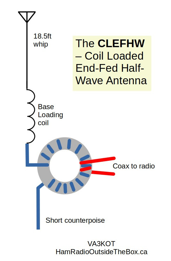 In the last post I introduced a crazy, off-the-wall idea for a variation of the popular End-Fed Half-Wave (EFHW) antenna. I called it the CLEFHW – Coil Loaded End-Fed Half-Wave. Its purpose is to allow backpack portable operation of an electrical half wavelength antenna without the need for a tree or pole to suspend a long wire.