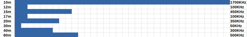 The HF bands have widely different bandwidths as seen below in this chart: