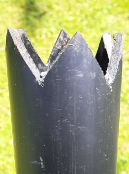 In the past I have dug a small divot to hold the base in place – effective but with a tendency to generate disapproval from park wardens. Now, to protect my precious Spiderbeam from catastrophic collapse I cut a set of “shark’s teeth” at the base of the support tube. It works and, if I ever encounter a growling bear on the trail, I can show it my shark’s teeth to intimidate it into retreat.